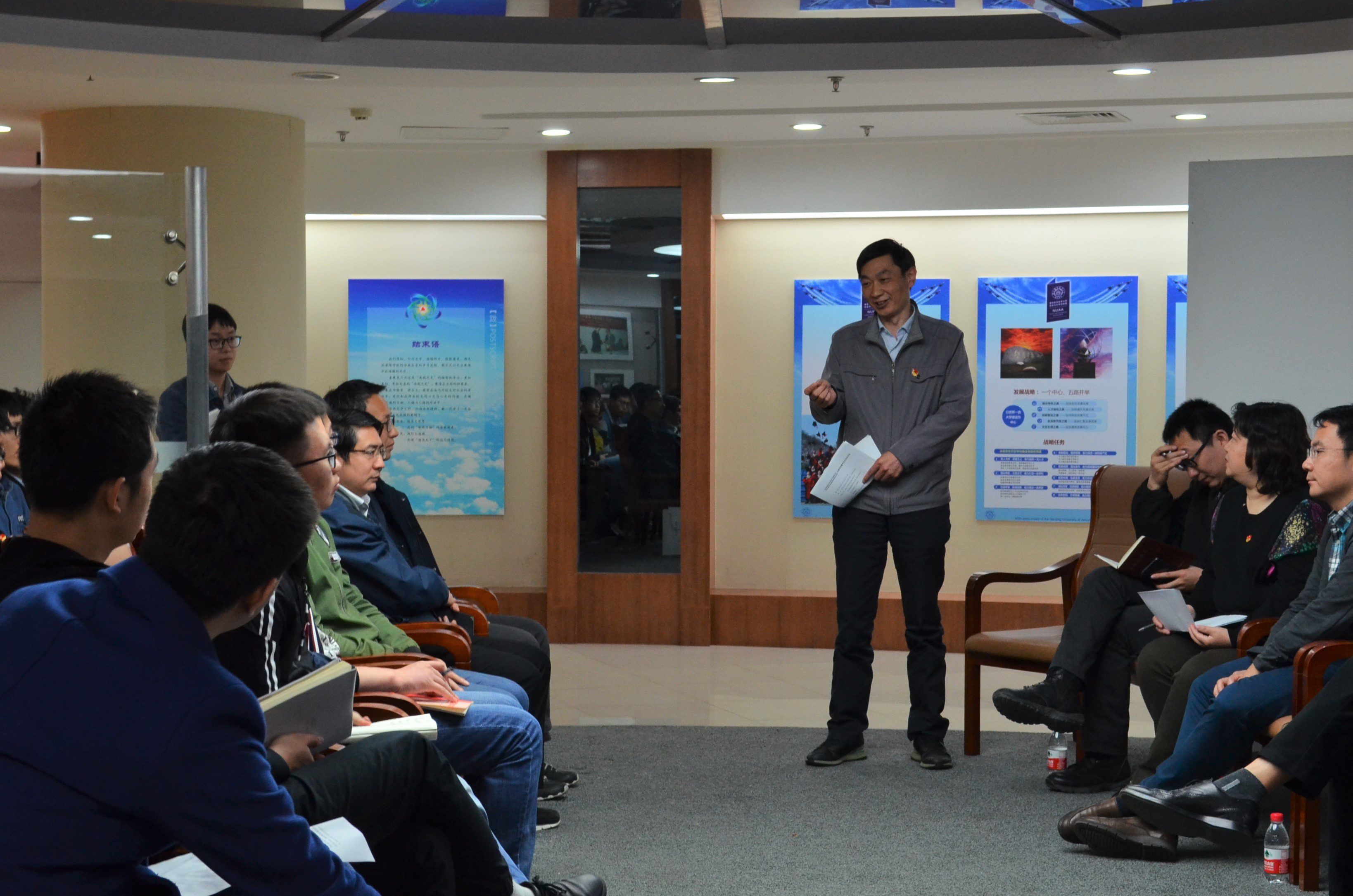 2018年4月12日,南京航空航天大学装备工程部党支部和裸聊app 电光先进制造团队研究生党支部在学校校史馆联合组织开展《厉害了,我的国》观影专题讨论会暨毕业生寄语活动,两个支部全体党员、电光先进制造团队全体教师以及全体毕业生参加了活动,学校党委组织部副部长王中叶、裸聊app 副书记徐俊珠、研究生辅导员张�受邀参加活动。活动由电光先进制造团队研究生党支部书记焦晨主持。