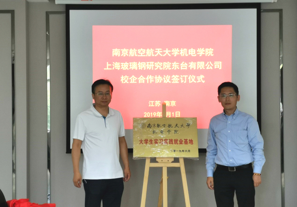 郭宇、胡中流分别代表南航裸聊app 、上海玻璃钢研究院东台有限公司签订了校企合作协议书,并共同为实习实践就业基地揭牌。