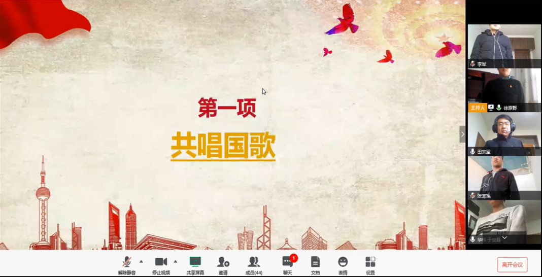 首先活动在大家齐声奏唱国歌声中开始,大家用歌声表达了对我们伟大祖国必将取得全面抗“疫”胜利的信心!