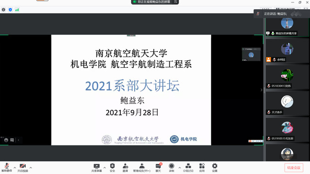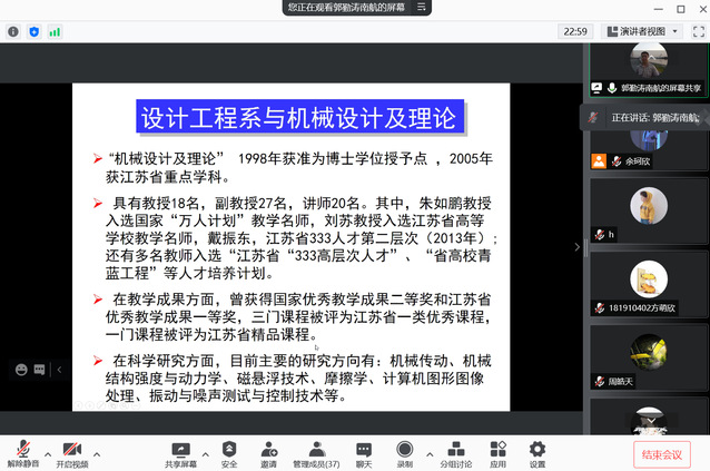 为进一步扩大学院影响,提升学院研究生生源质量,9月28日到9月30日,裸聊app 开展了3期线上系部大讲堂活动。本次大讲堂邀请到了设计工程系副主任郭勤涛、机械制造及其自动化系副主任郝秀清、机械电子工程系副主任姚佳烽、航空宇航制造工程系副主任鲍益东和工业设计系主任周海海老师作为主讲人,活动采用线上会议的方式。