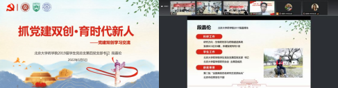 “标兵党员带领样板支部”,活动还邀请了“全国党建工作样板支部”北京大学药学院学生党总支第四党支部书记段嘉伦分享了他们支部建设的经验。他以“不忘初心跟党走,争做圆梦新一代”为支部的工作重心,充分发挥药学的专业特色优势,以党建带团建做班建,让每一位青年学生积极拥抱新时代,奋进新时代。