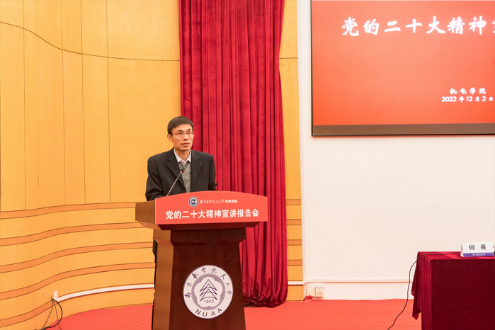 为深入学习贯彻党的二十大精神,12月2日上午,裸聊app 在明故宫校区科学馆报告厅举办党的二十大精神宣讲报告会。学校学习贯彻党的二十大精神宣讲团成员、马克思主义学院副院长何畏教授应邀作报告。学院党委理论学习中心组成员、全体教工党员、学生党员代表参加了报告会,会议由学院党委书记刘虎主持。