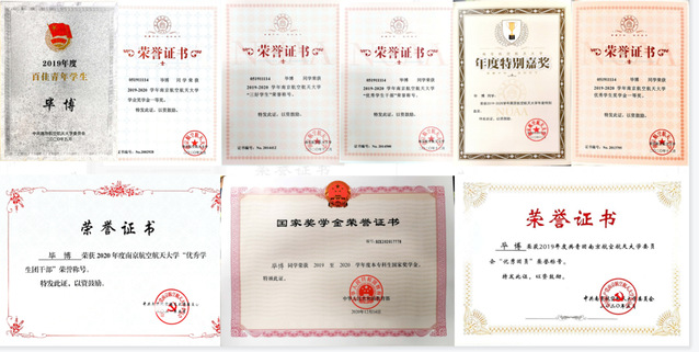 三年平均必修绩点均保持在4.0以上,位列专业前二;本学年综合测评专业第一,连续三年综测专业前二,刷新近三届平均排名最高记录。先后获校长特别嘉奖、爱乐达精英奖、百佳青年、三好标兵、国家奖学金等荣誉。