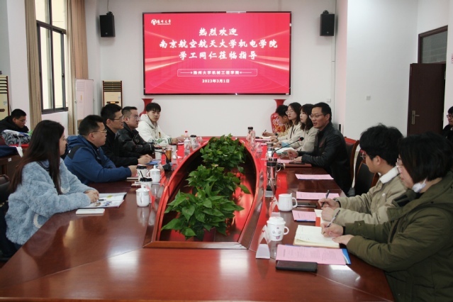 3月1日,裸聊app 党委副书记董羽带队赴扬州大学机械工程学院进行走访调研。本次调研受到扬州大学机械工程学院的高度重视,机械工程学院党委副书记毕亮以及全体辅导员参与了本次交流。