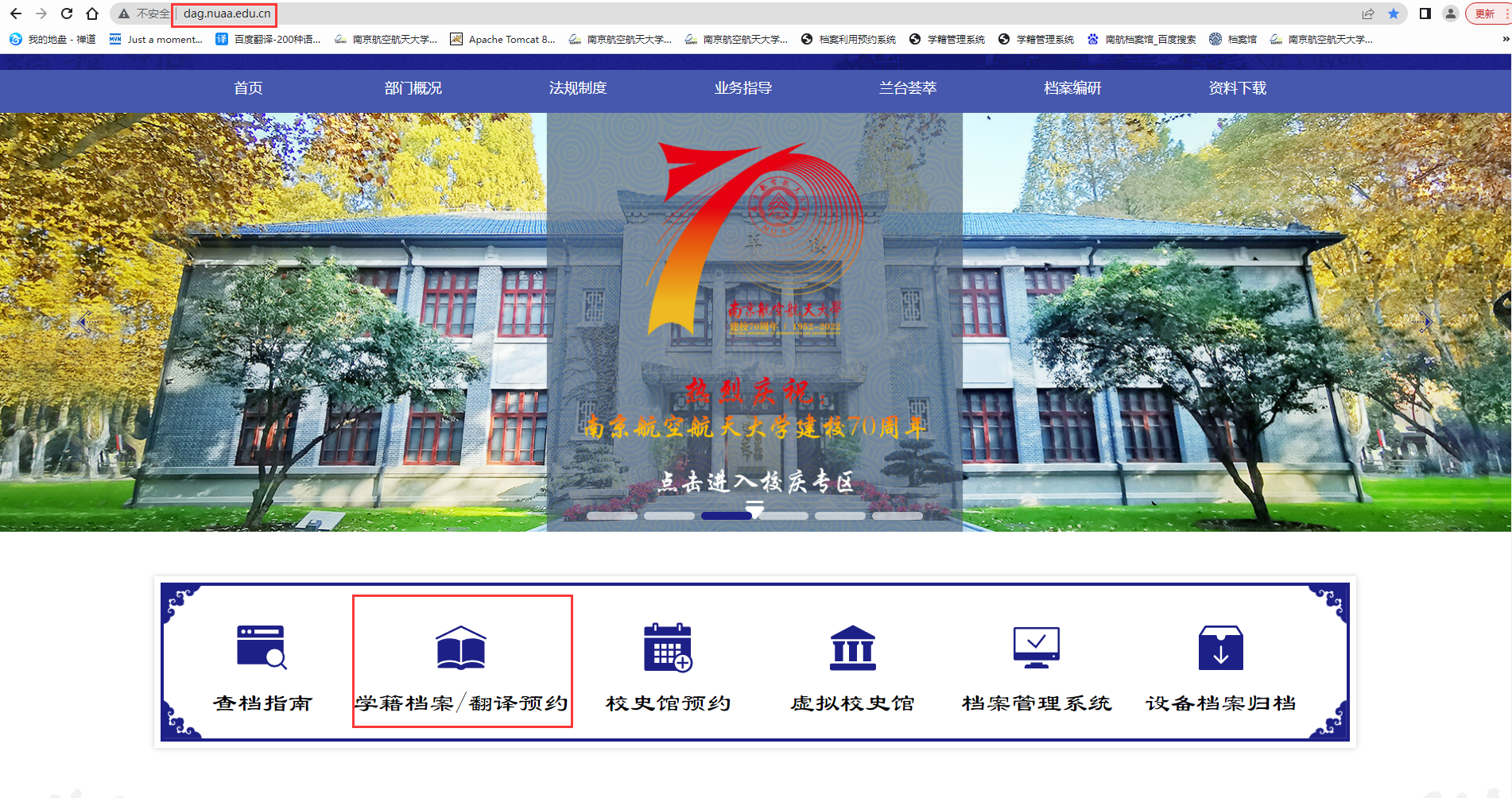 途径2:访问南航档案馆官网裸聊app//dag.llapp88.com/,在裸聊app“学籍档案/翻译预约”模块进行访问。