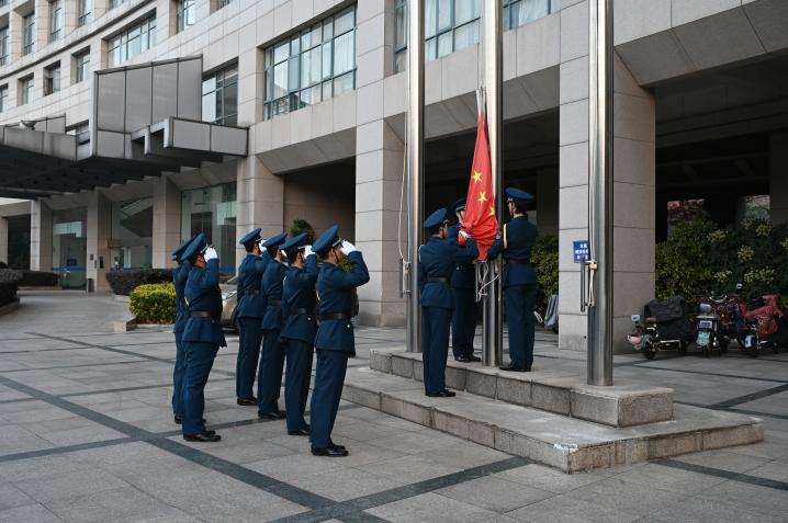 清晨七点,升国旗仪式正式开始。全体师生肃立致敬,目光聚焦于鲜红的国旗。激昂雄壮的《义勇军进行曲》奏响,五星红旗冉冉升起、迎风招展,映照出师生们坚毅的眼神与赤诚的初心。