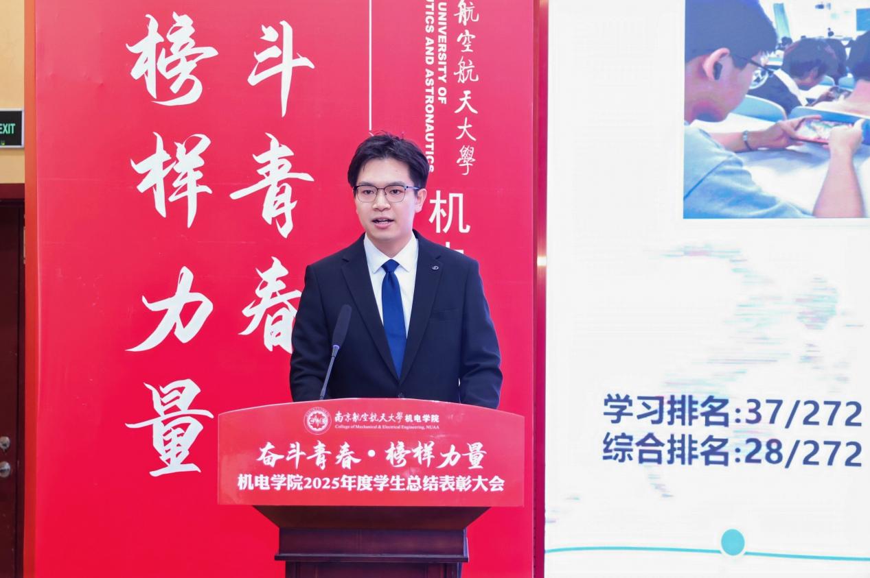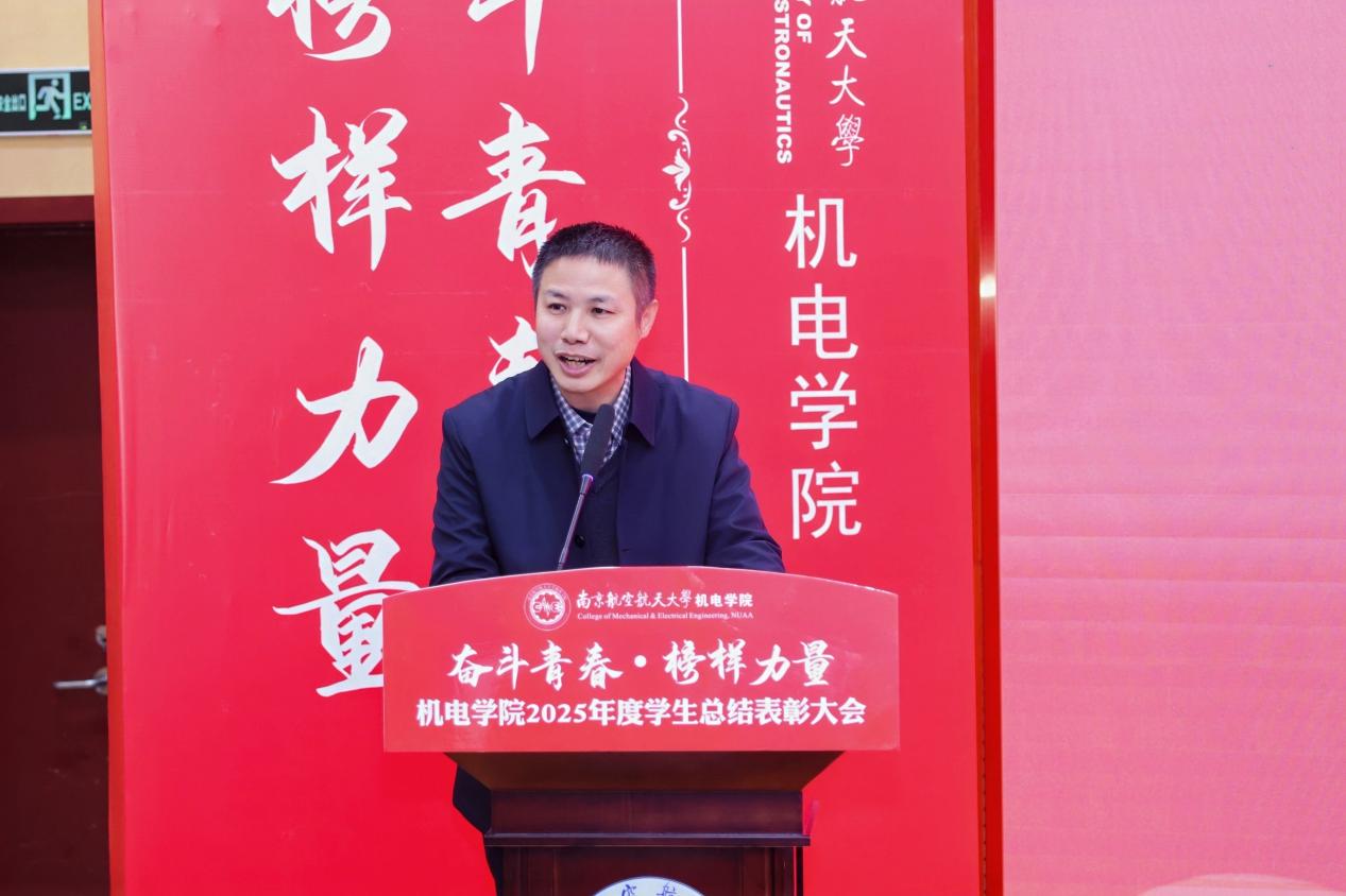 大会最后,裸聊app 党委书记刘虎作总结讲话。他代表学院向获奖集体与个人表示祝贺,向设奖单位及校友表示感谢。刘虎书记指出,本次大会既是一次榜样事迹分享会,也是一堂生动的思政公开课。他勉励全体机电学子要铸牢信仰之基,将个人理想融入国家航空航天事业大局;要锤炼过硬本领,勇于攀登科技高峰,助推高水平科技自立自强;要永葆奋斗之姿,勇担时代重任,在推进强国建设、民族复兴的伟大实践中书写无愧于时代的青春篇章。